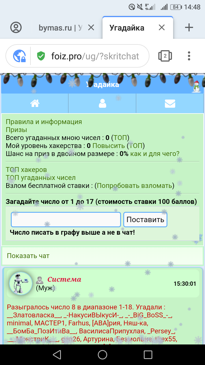 Если пользователь угадывает число, то ему на счет перечисляется призовой фонд, указанный создателем игры. На счет создателя зачисляется сумма, набравшаяся за оплату попыток голосования. Если игра завершается, то создавшему игру приходит уведомление в почту о завершении и количестве баллов, набравшихся в результате оплаты голосов участников. Игра завершается автоматически. Игра только для авторизованных.
