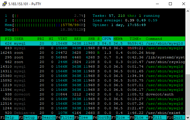 Привет. Есть vds - 2 ядра cpu, 1 gb ram. Заметил, что БД использует только 1 ядро процессора, второе всегда простаивается. В среднем идёт 50-100 запросов в секунду, активных процессов БД - 170.