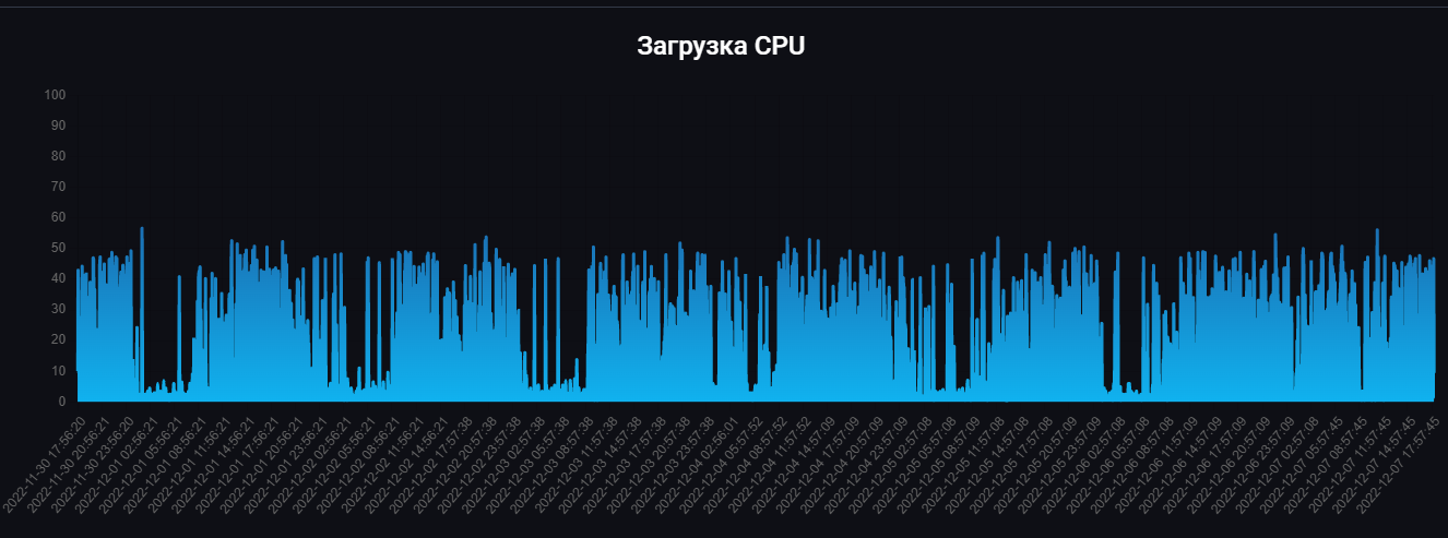Тебя вообще не смущает график, на котором одно ядро в потолок загружено почти всегда?)