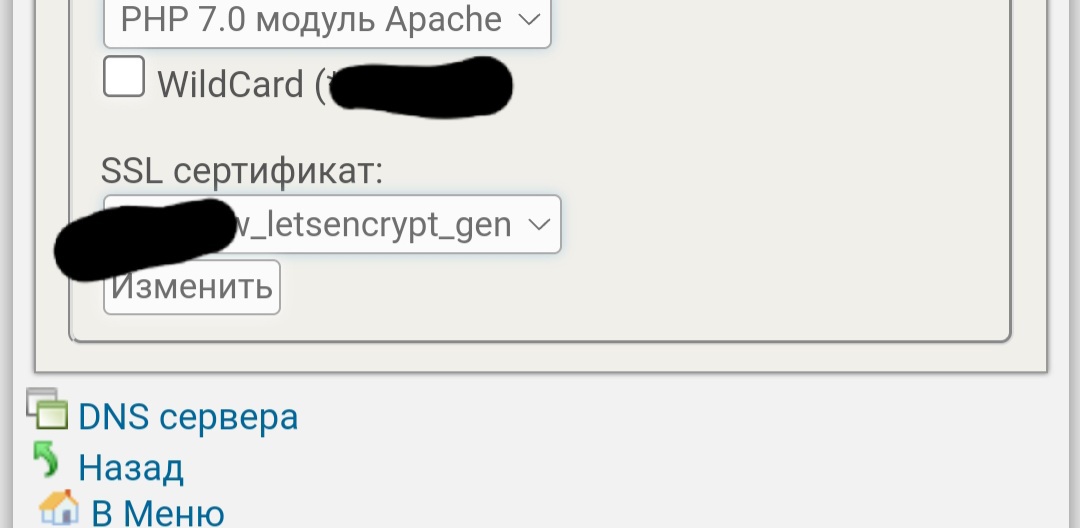 Зайди в Парковка доменов: настройки выбири сертификаты