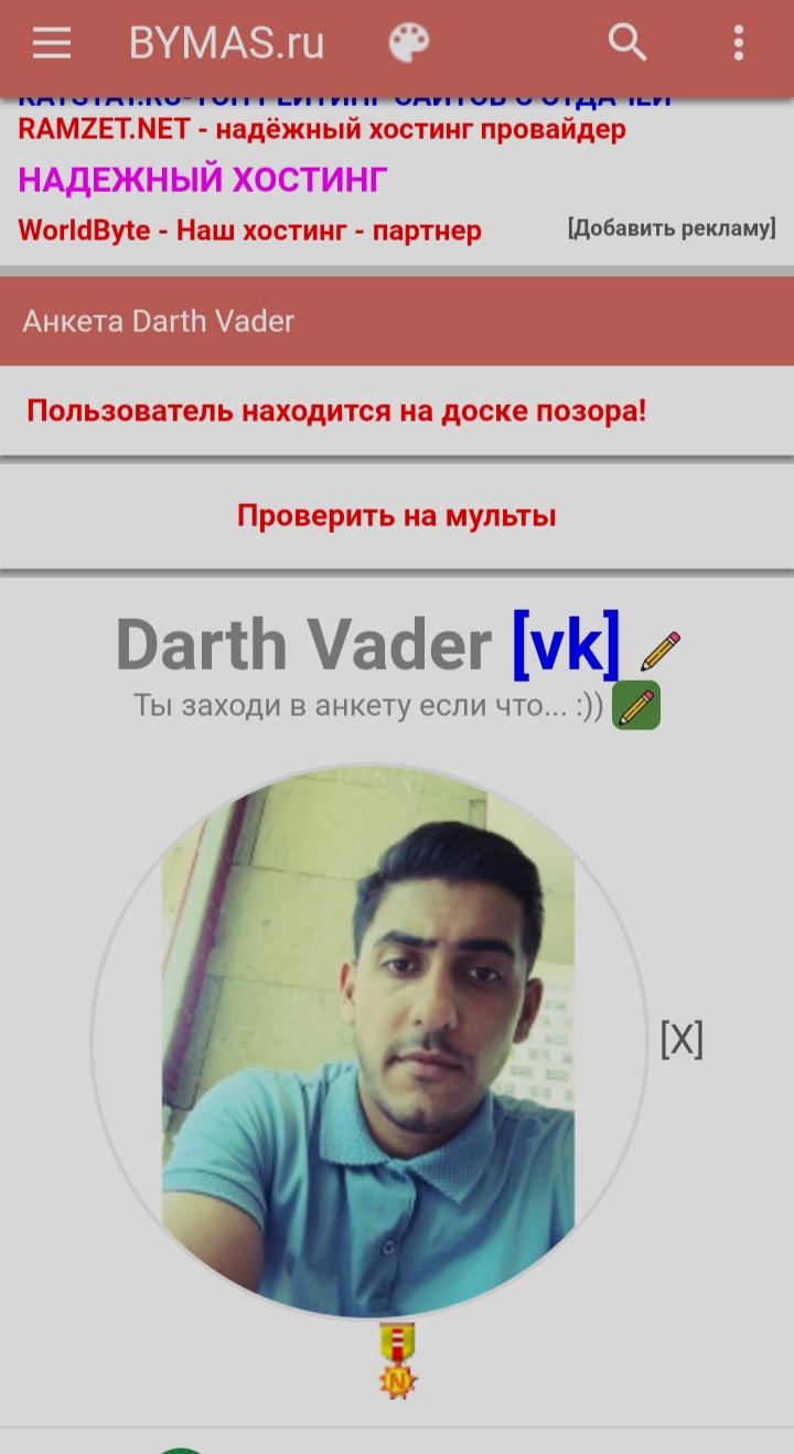 Далее идём на аккаунт с [!] и видим то, что он через ВК