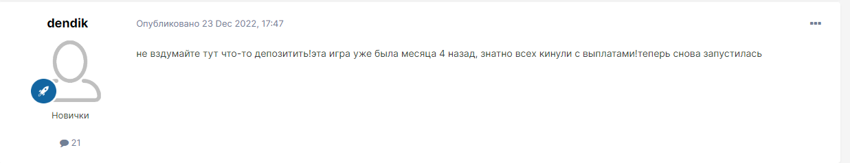 Причина: Проект скам