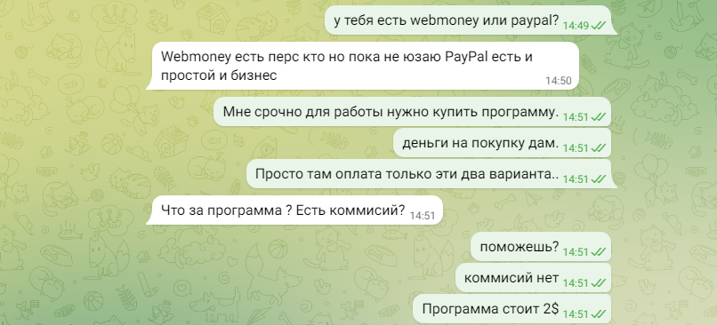 Потом спустя время я к нему обратился за помощью, а именно оплатить один товар на зарубежном сайте (цена 2$), скрипт который он мне купил нужен был для заказа который я делал на тот момент.