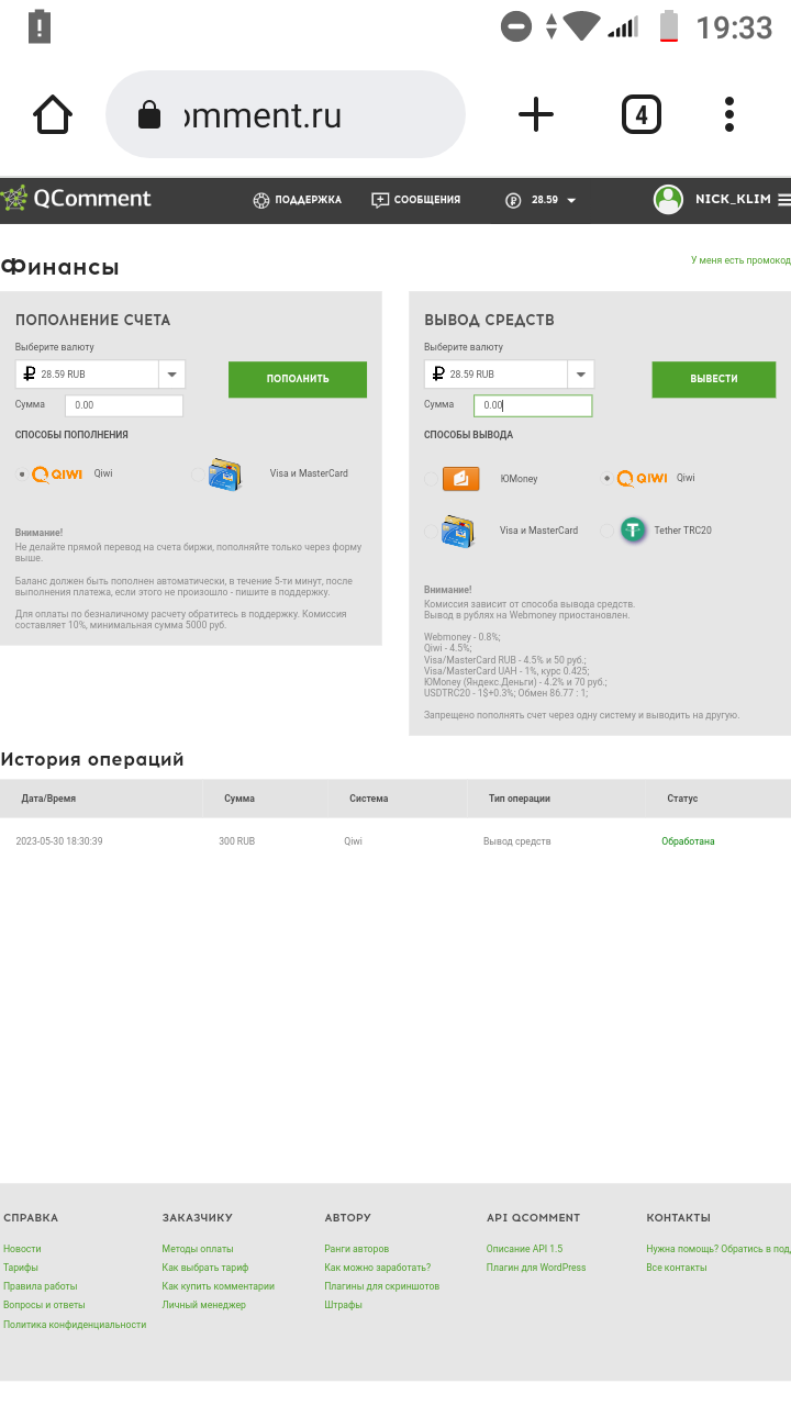 Qcomments можно выводить от 300 рублей. Если зарегаться по реферату, то бонус будет. Нормальная штука, можно в неделю по 1,5 к зарабатывать
