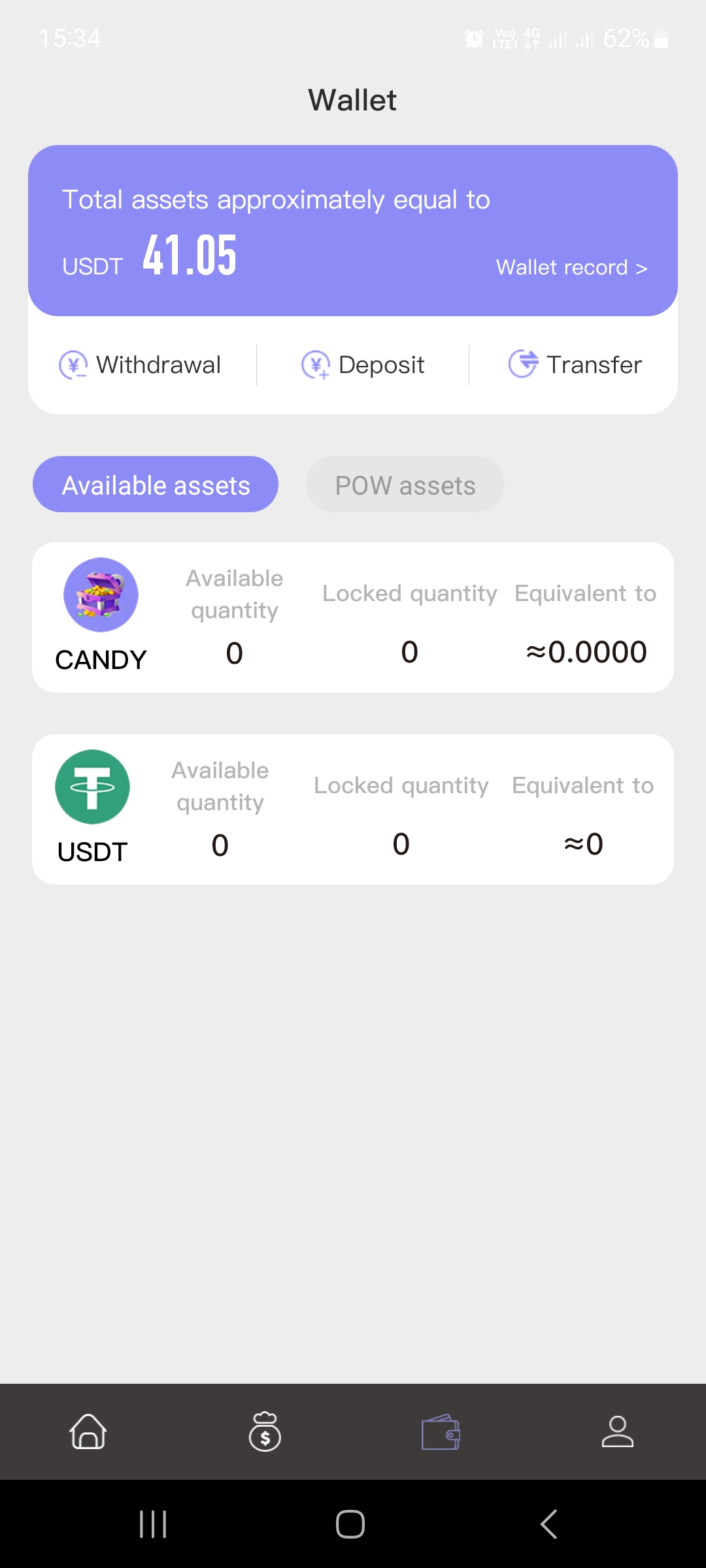 Когда нажимаю на Withdrawal "Снятие" показывает 0 usdt, и невозможно снять вот, хотя на балансе 41 usdt