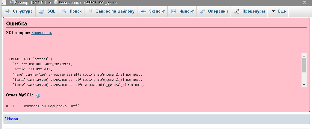 Обучение/Помощь новичкам | Не могу залить бд
