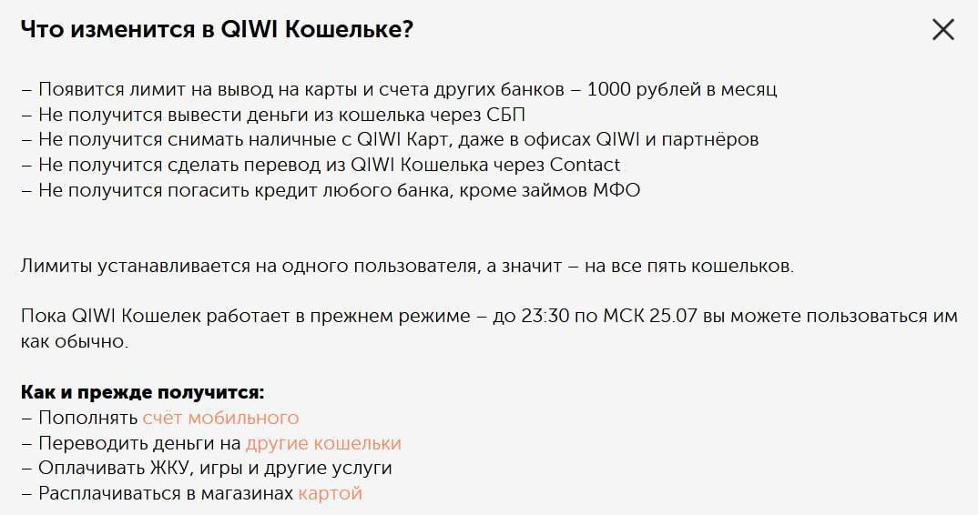 После проверки из ЦБ кошелёк стал бесполезным — нельзя вывести деньги по СБП, перевести больше 1000 рублей в месяц и снять наличные.
