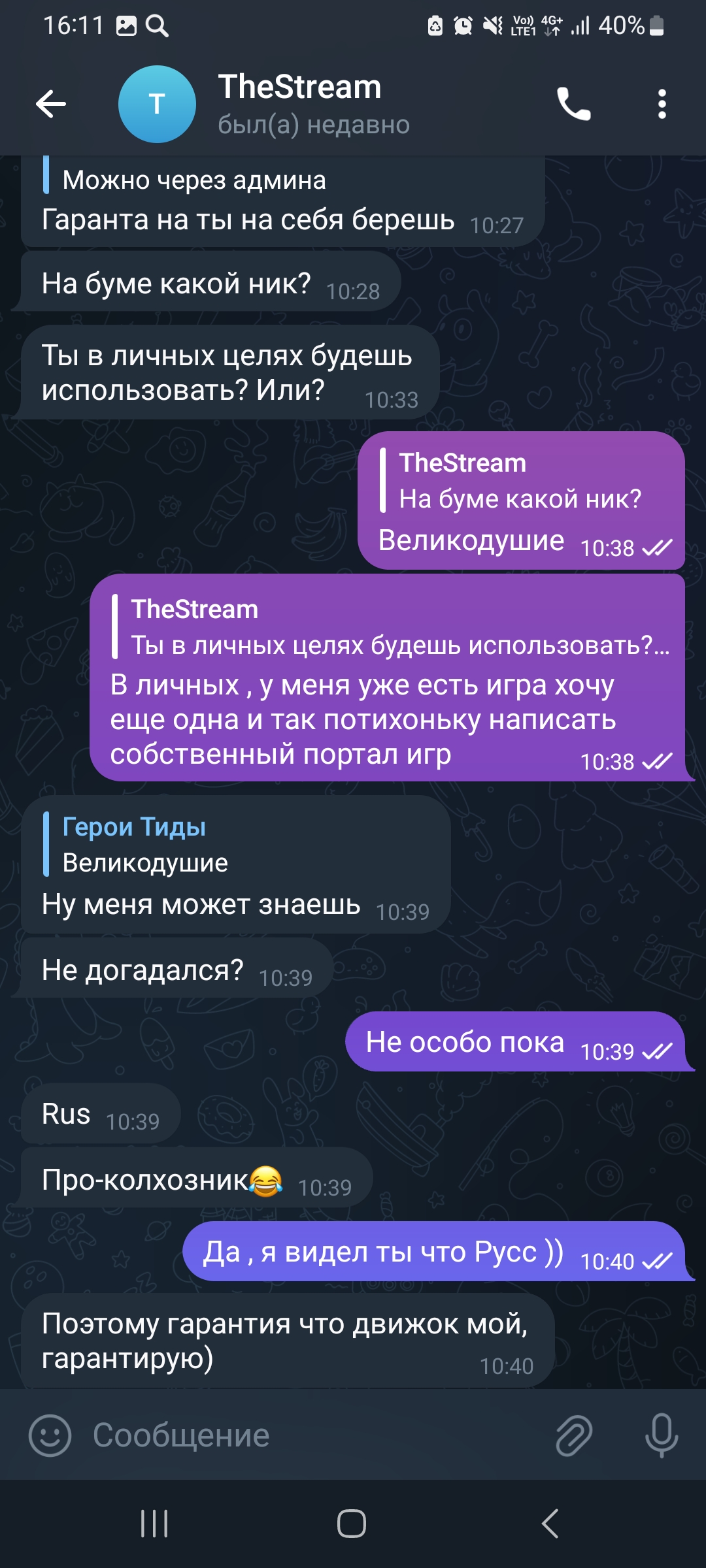 Да я и не скрывал свой тг как бы... Чё разнылись то. Изначально данное действие было обговорено с Сашей. Финансовую деятельность в области бумаса конкретную я не веду. Соберите уже сопли, нытики)