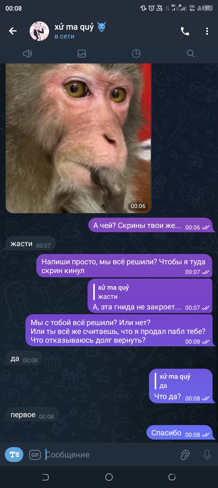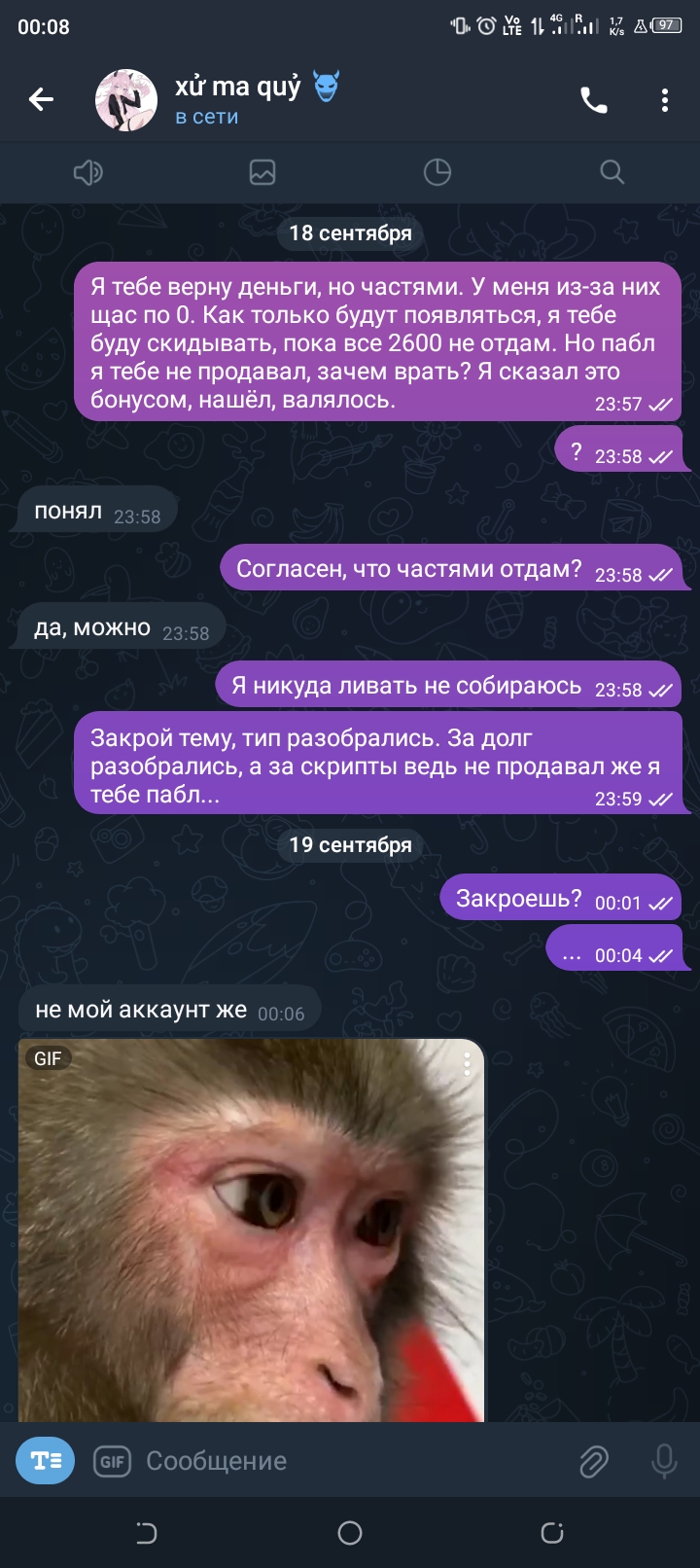 С тем, кому я должен деньги, всё решили. Я не продавал пабл, и долг не отказываюсь ему вернуть. Вот скрины подтверждения.
