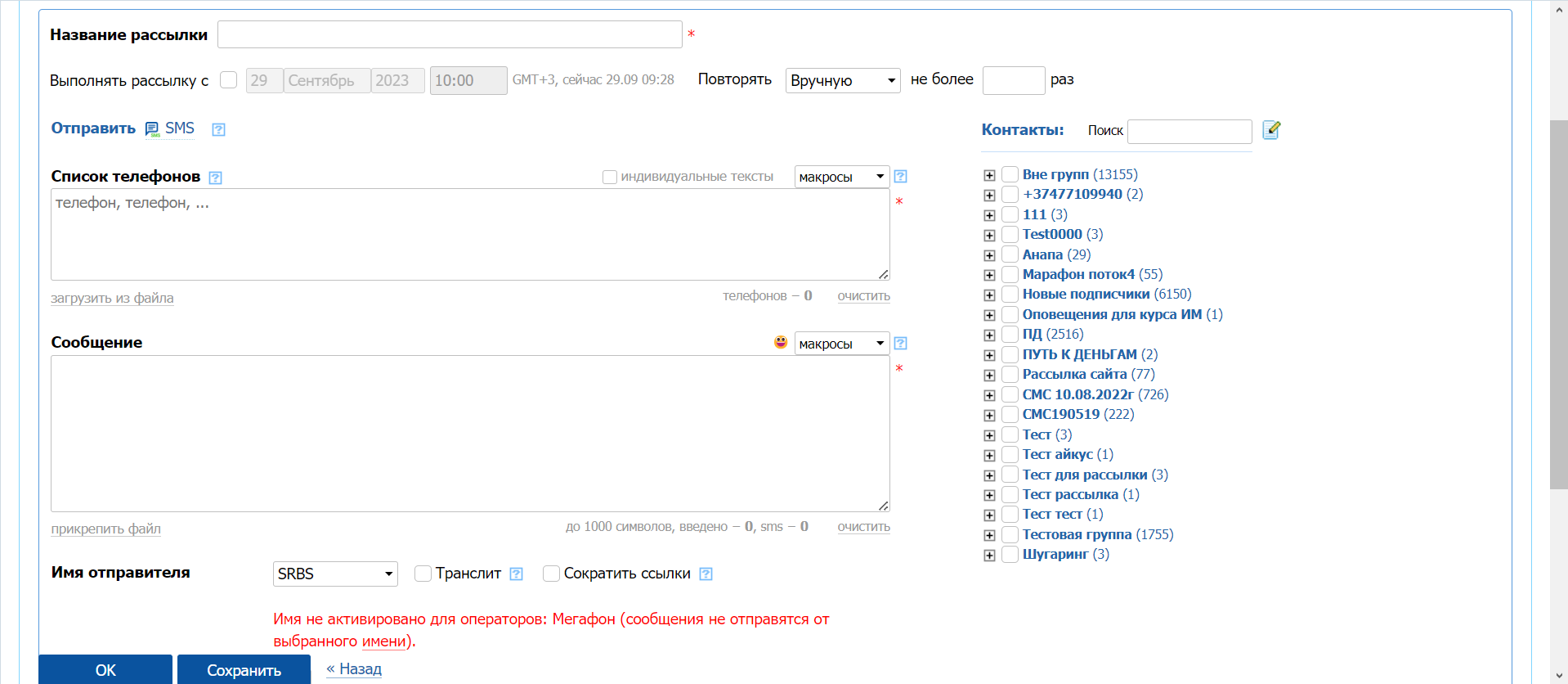 Посоветуйте сайт для смс рассылок недорогой. То есть я вбиваю список номеров и текст сообщения и отправляю всем.