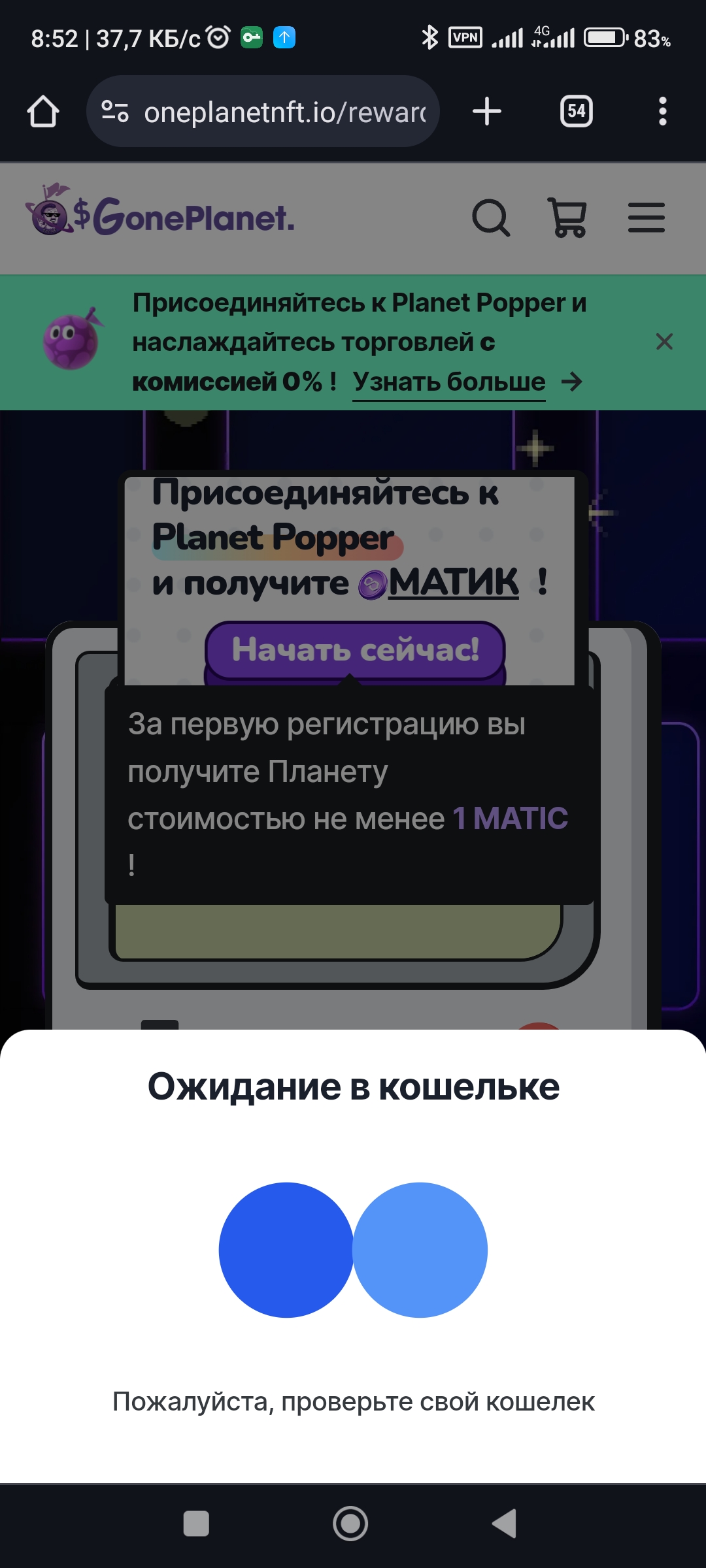 Получаем халявный Matic от NFT маркетплейса Oneplanet