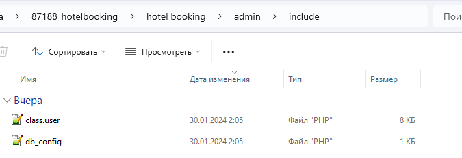 в файле include/class.user.php в 8 стройке замени $this->db=new mysqli(DB_SERVER,DB_USERNAME,DB_PASSWORD,'hotel'); на просто имя базы не подхватывает из конфига поэтому и ошибка