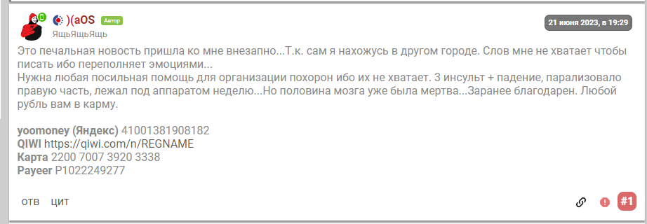 Тут больше не о смерти твоего отца, а о твоем трепе. Вчера ты трусил что ты там где то плаваешь что я в шоке буду если ты расскажешь где. А по факту, ты похорон не смог оплатить. Зачем тогда все эти понты? Не ужели трудно быть тем кем ты являешься? Или это стыдно для тебя?