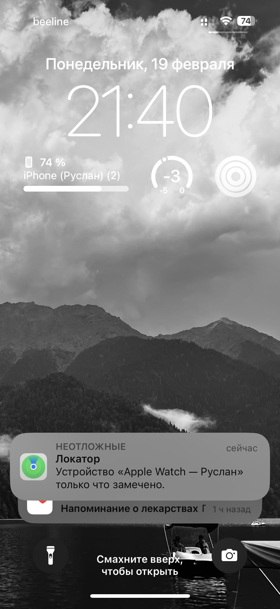 Включил режим пропажи через локатор, и мне присылаются такие уведомления. Но не понятно, где сами часы.