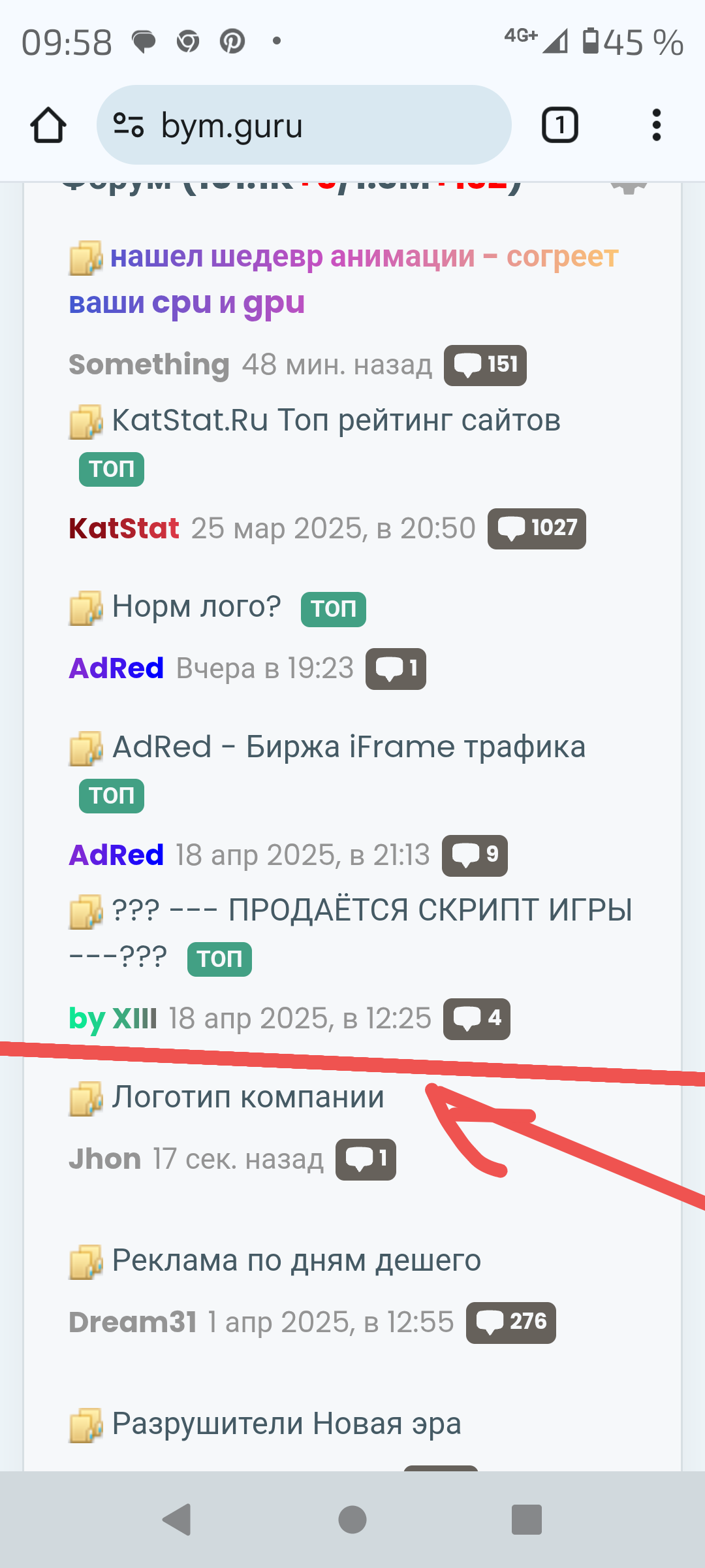 Я б предлагаю немного улучшит вид форума, на главной, это не критично, но все ж улучшение на вид будет гуд, на скрине метка красный, где я создал новый тему а разделение от остальных не заметно, зделат заметным как б