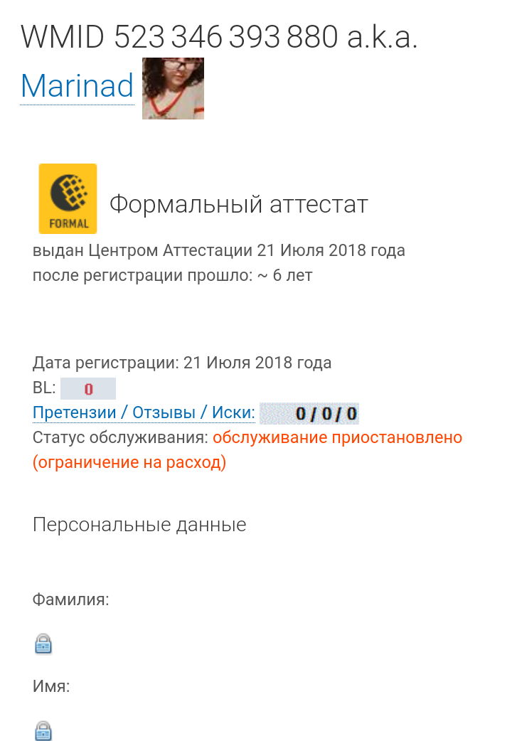 Кто не зареган в вм, вот скрин ее заблоченного вмида. Не смотрите что 0 претензий, они там автоматически удаляются в архив по истечении определенного времени.