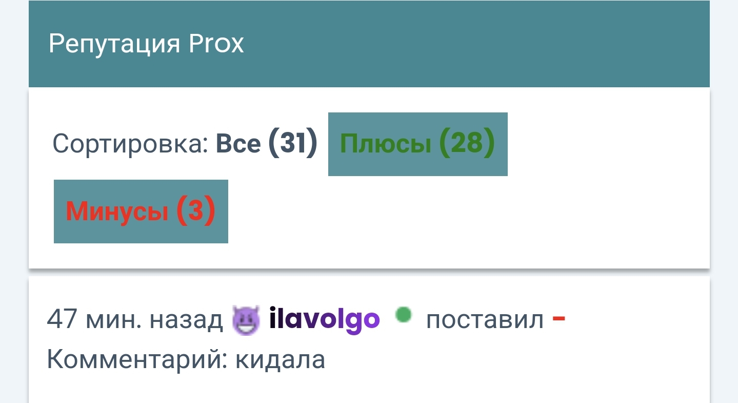 добавил мне минус с комментарием кидала, потом добавил в чёрный список))) даун что сказать