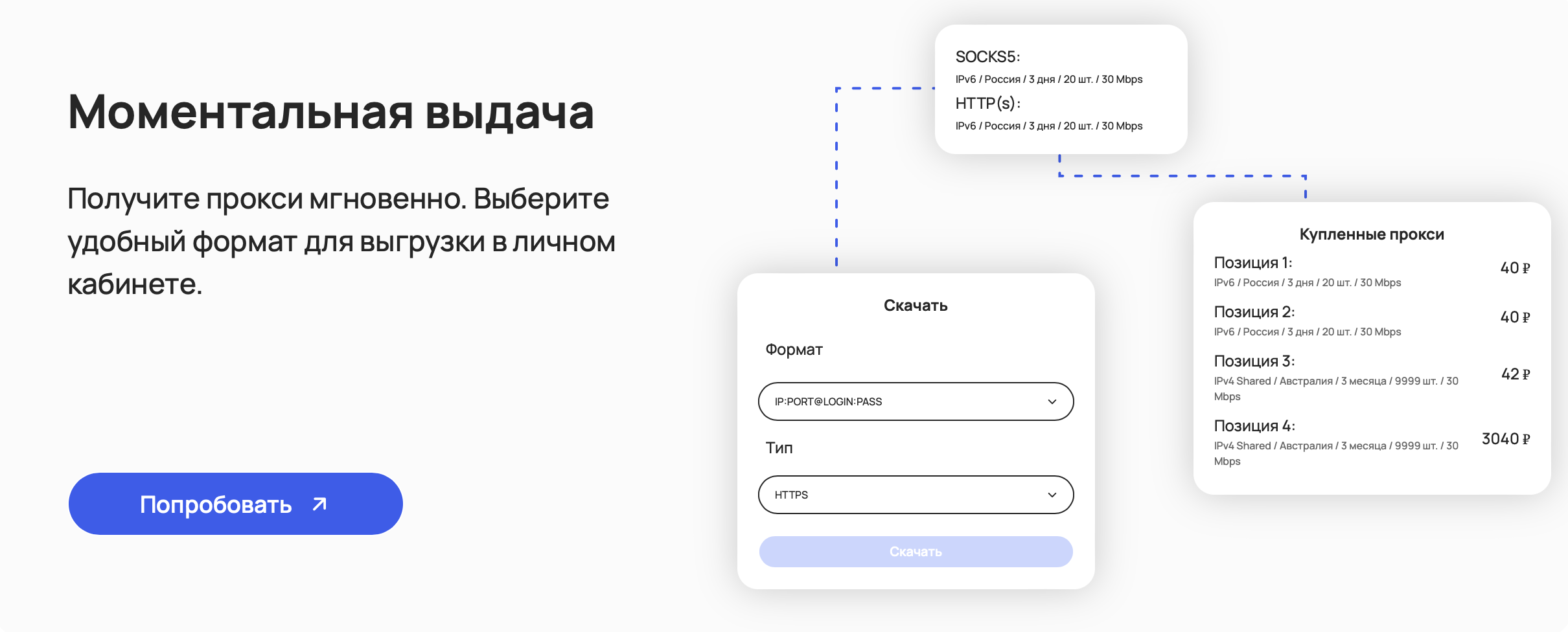 При покупке наших прокси – их выдача происходит мгновенно