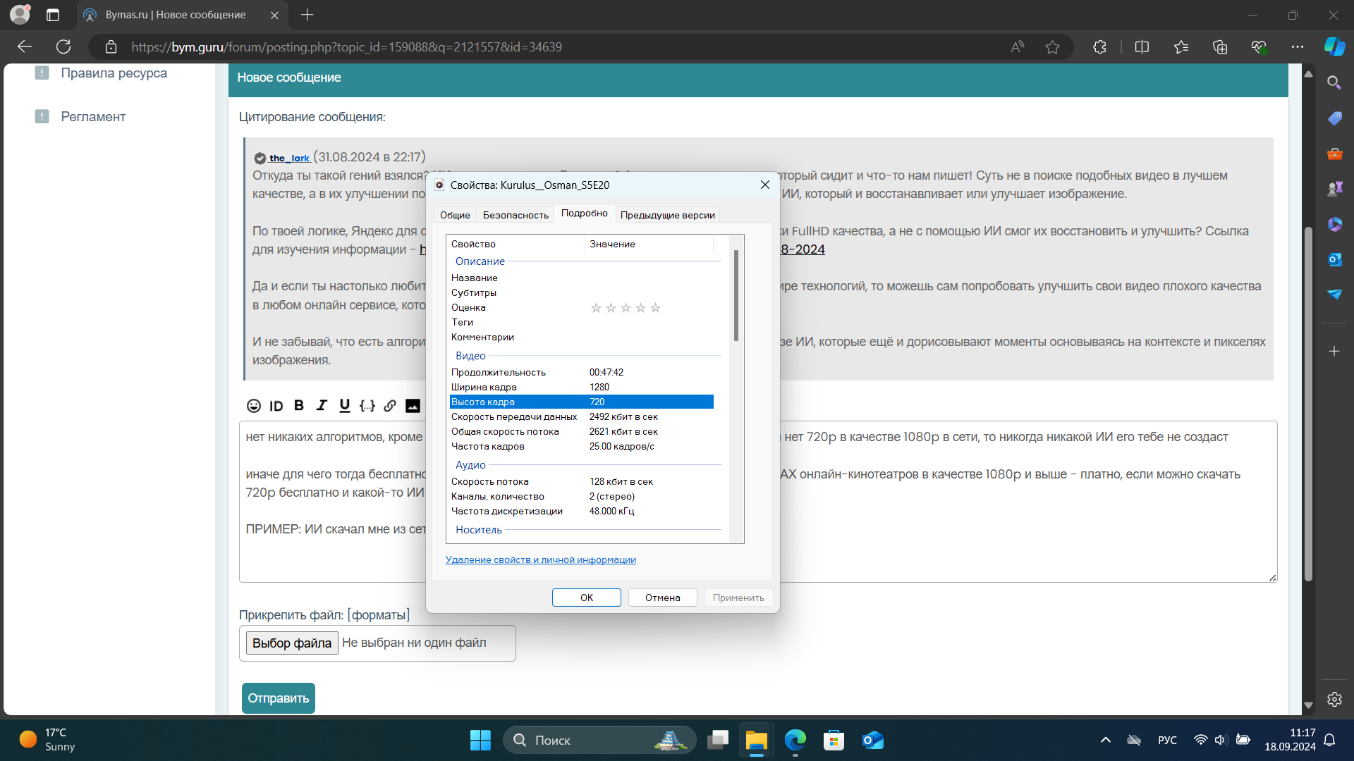 ПРИМЕР: ИИ скачал мне из сети файл по запросу 1080p смотрим свойства файла, отсосиновик, а не 1080p, потому что в сети есть только 720p, чтобы скачать 1080p, то нужно заплатить, а в этом случае пусть ИИ отсосёт
