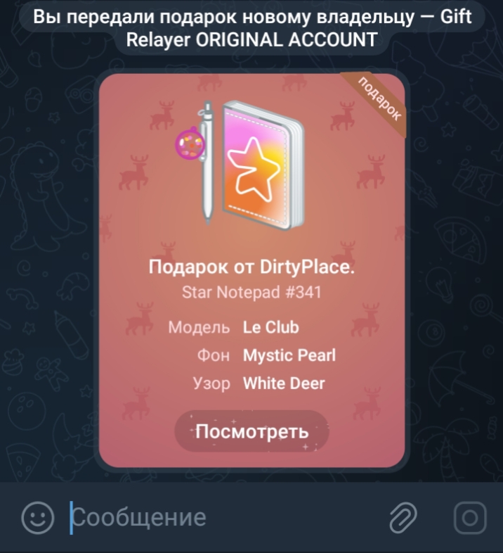 Прикрепил скрин как выглядет сообщение когда кто-то отправляет подарок.