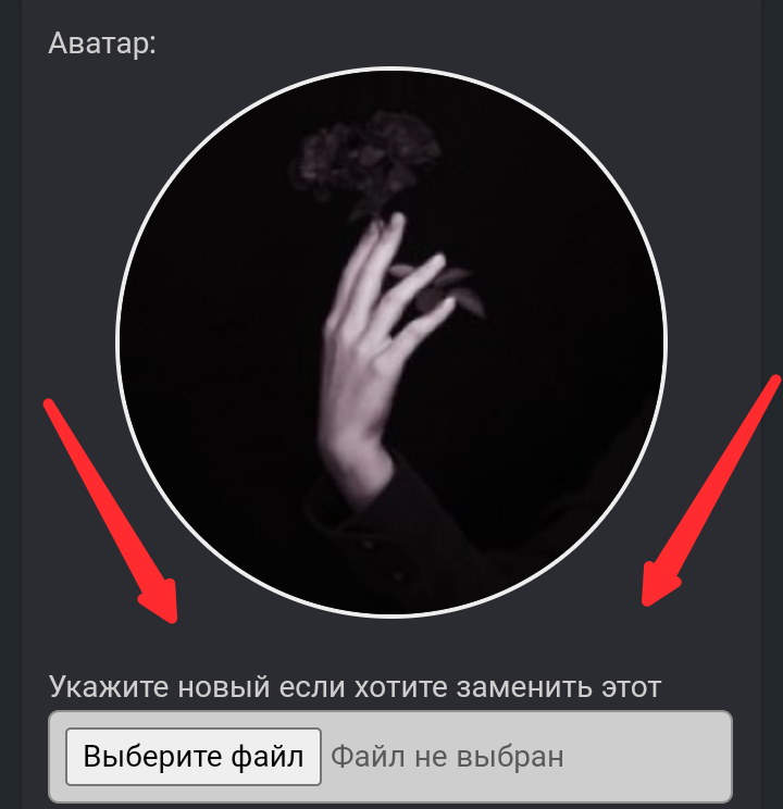 А почему "укажете если хотите заменить", не лучше ли написать " Сменить аватар:" И снизу input