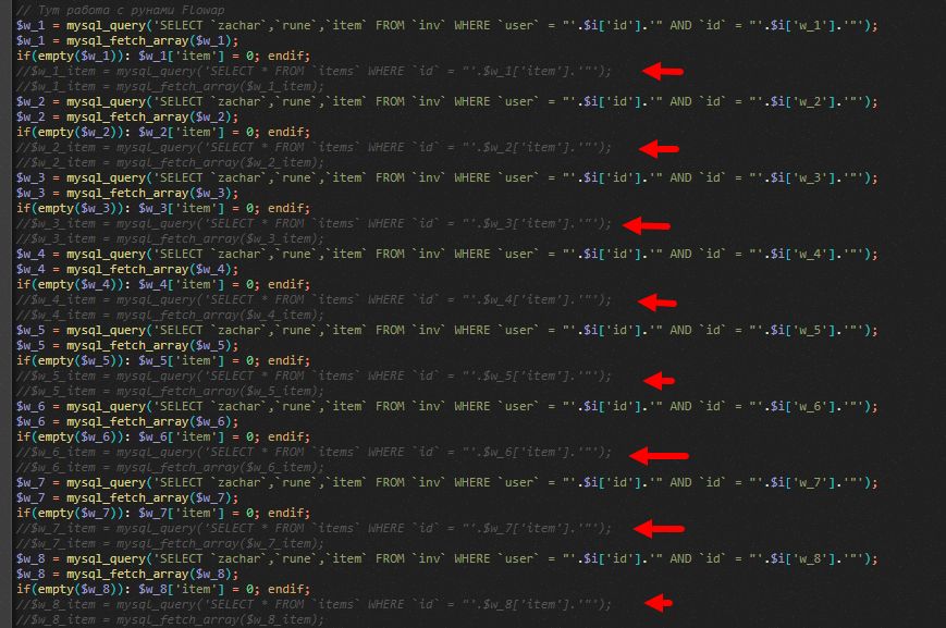 Я правильно понимаю что код который в комментариях это запрос в базу данных для вывода снаряжения в профиле игрока ?