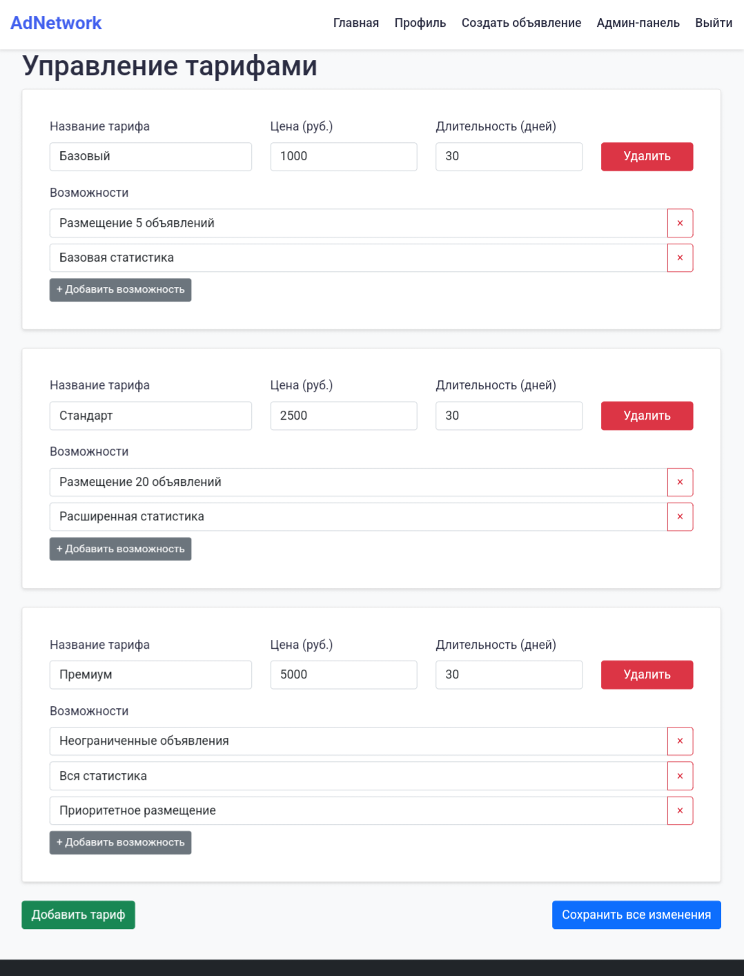 Управление тарифами