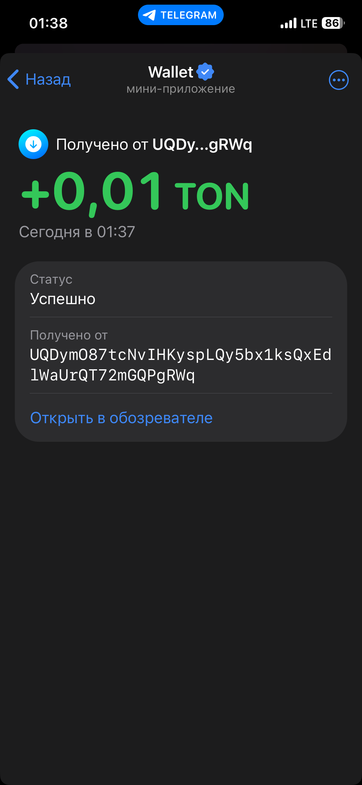 - После выполнения условий — 4 TON падают прямо в игру!