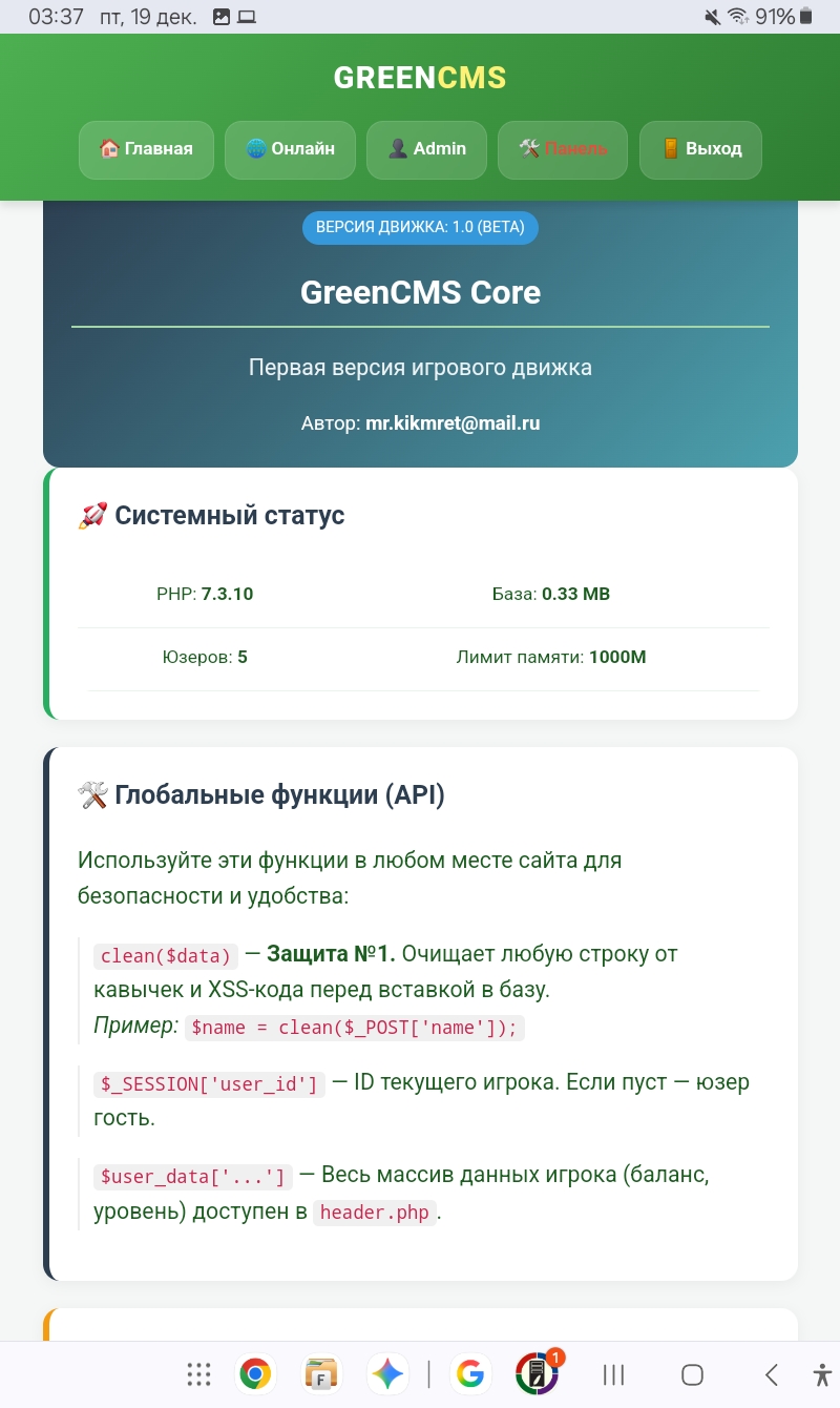 Управление файлами и базой данных прямо из админки сделал и инстал