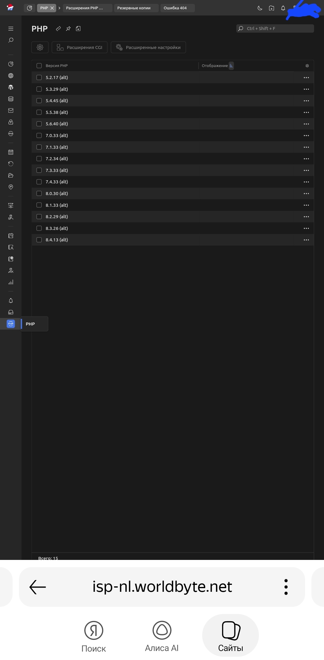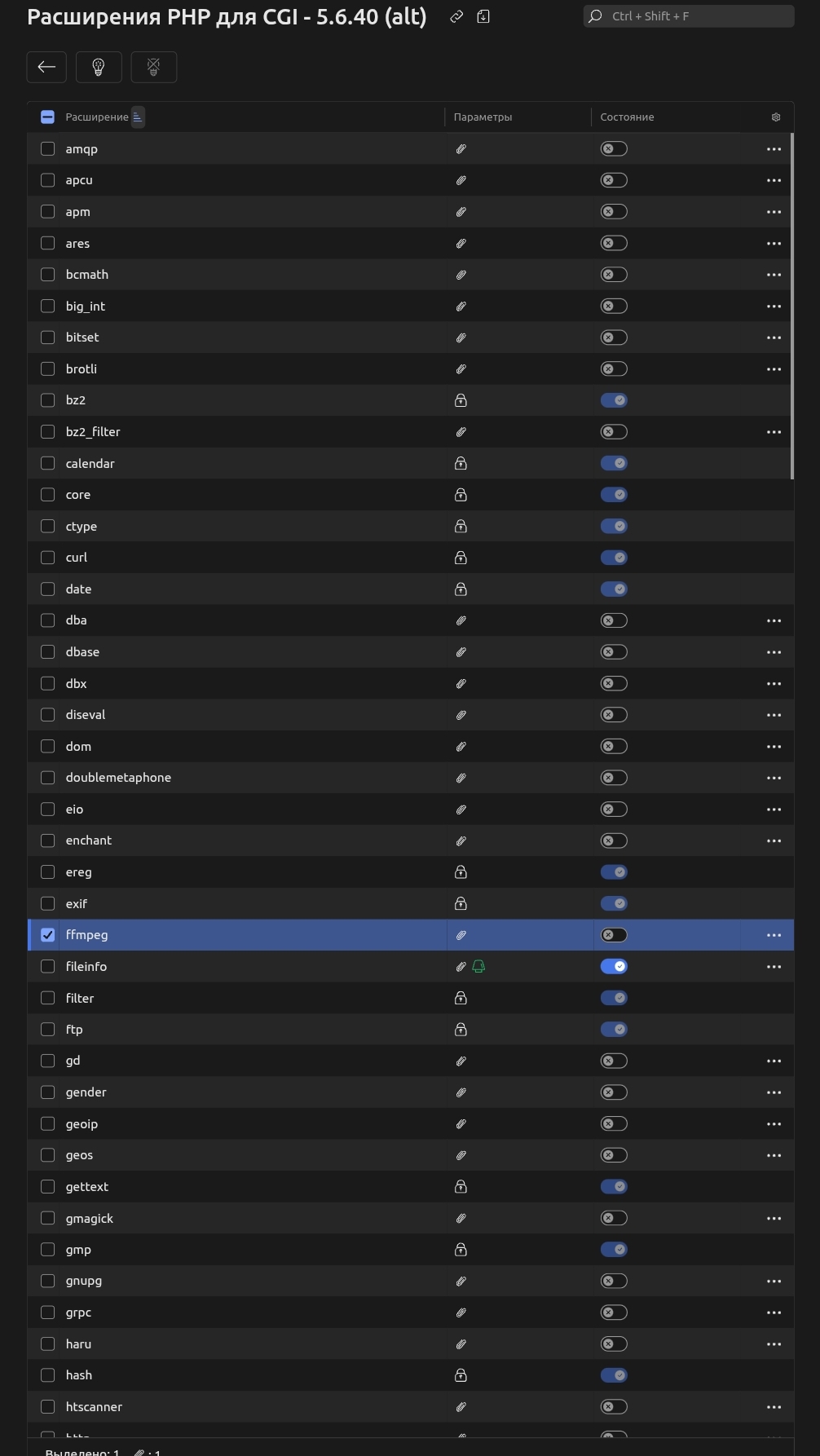 WorldByte активно использует панель ISPmanager 5/6. Если FFmpeg был удален, но отображается в списке расширений: