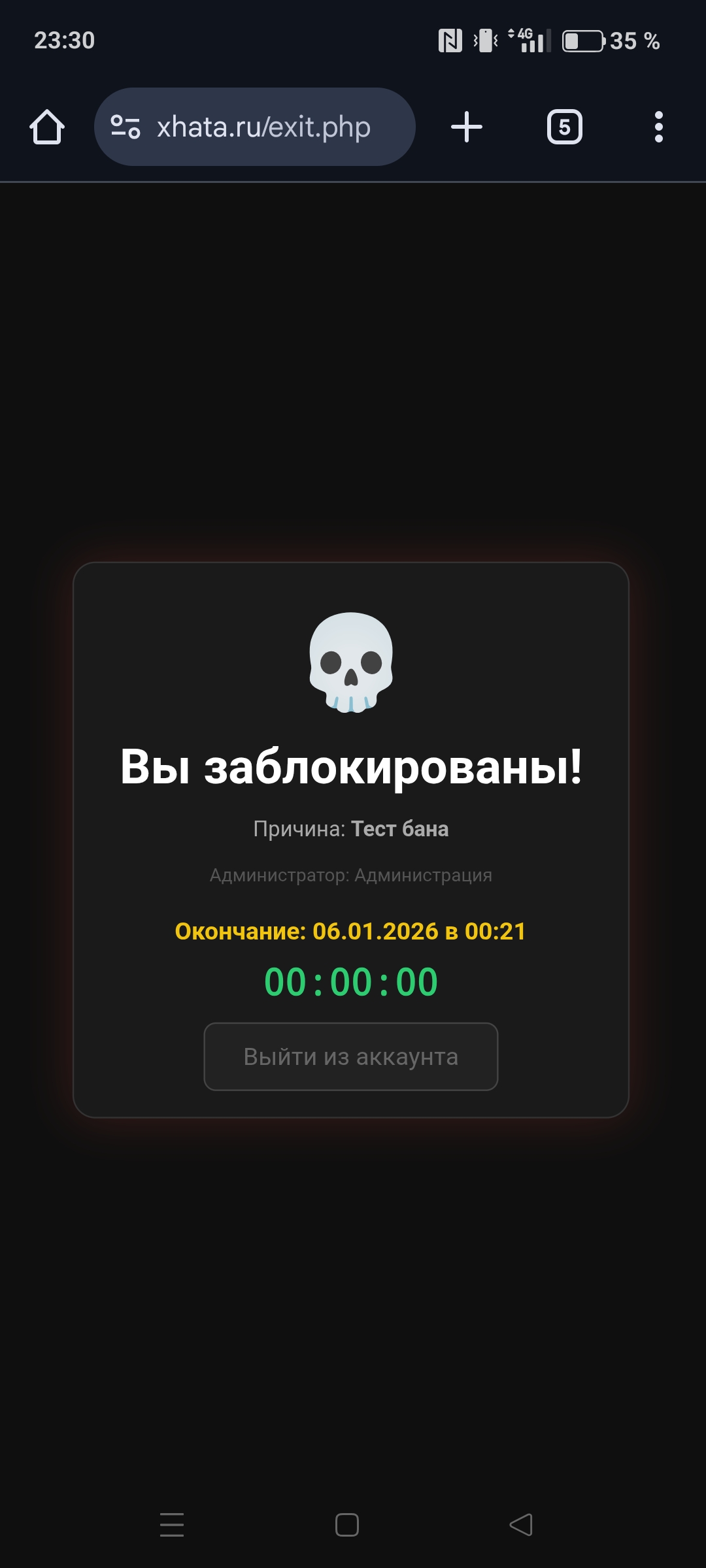 Короче словил бан писал систему бана на самописе, нажал кнопку выхода и система выдала бан.