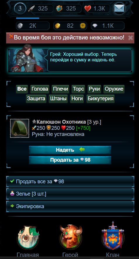 Было бы не плохо чтобы из инвентаря можно было бы вернутся в бой, а то задание предлагает одеть вещь , я в бой перехожу в экипировку, а в бой вернутся не могу