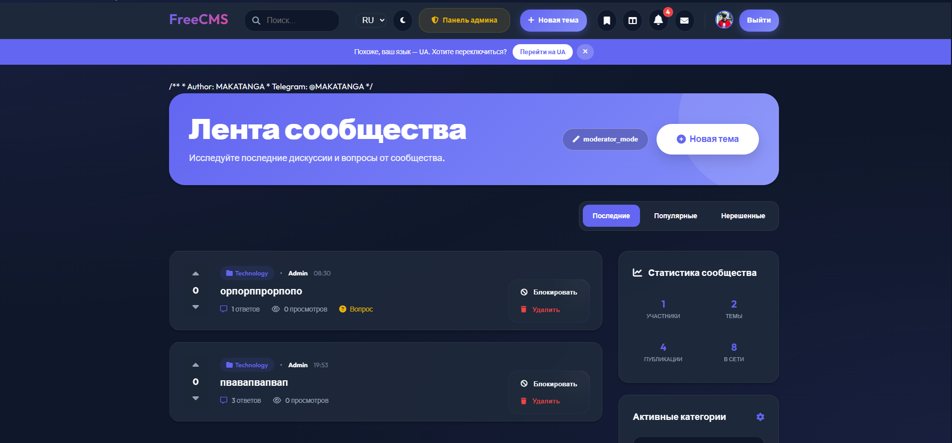 PHP, MySQL | FreeCMS - Форум для вас