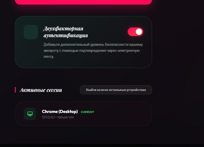 UPD: Добавлена Двухфакторная аутентификация. + активные сессии.