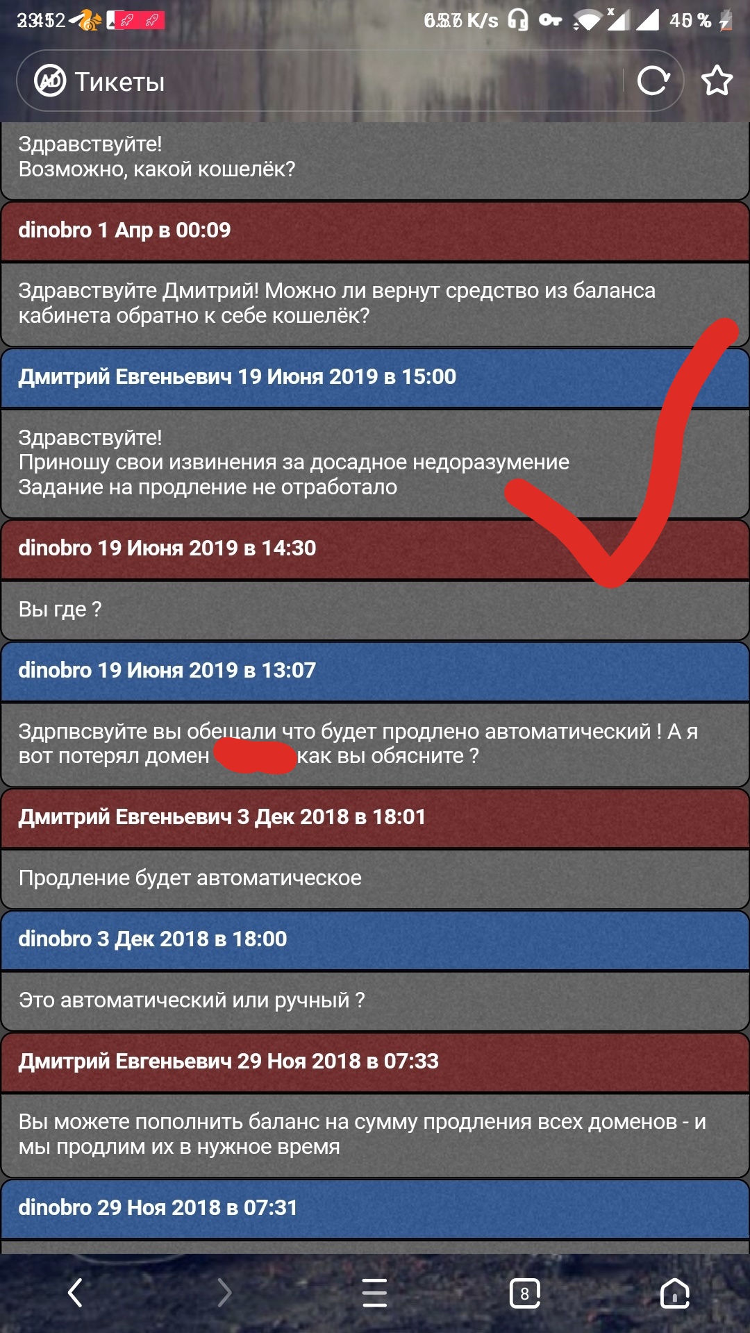 Mobiaaa , не спорю денги вернули! Но я домены потерял...