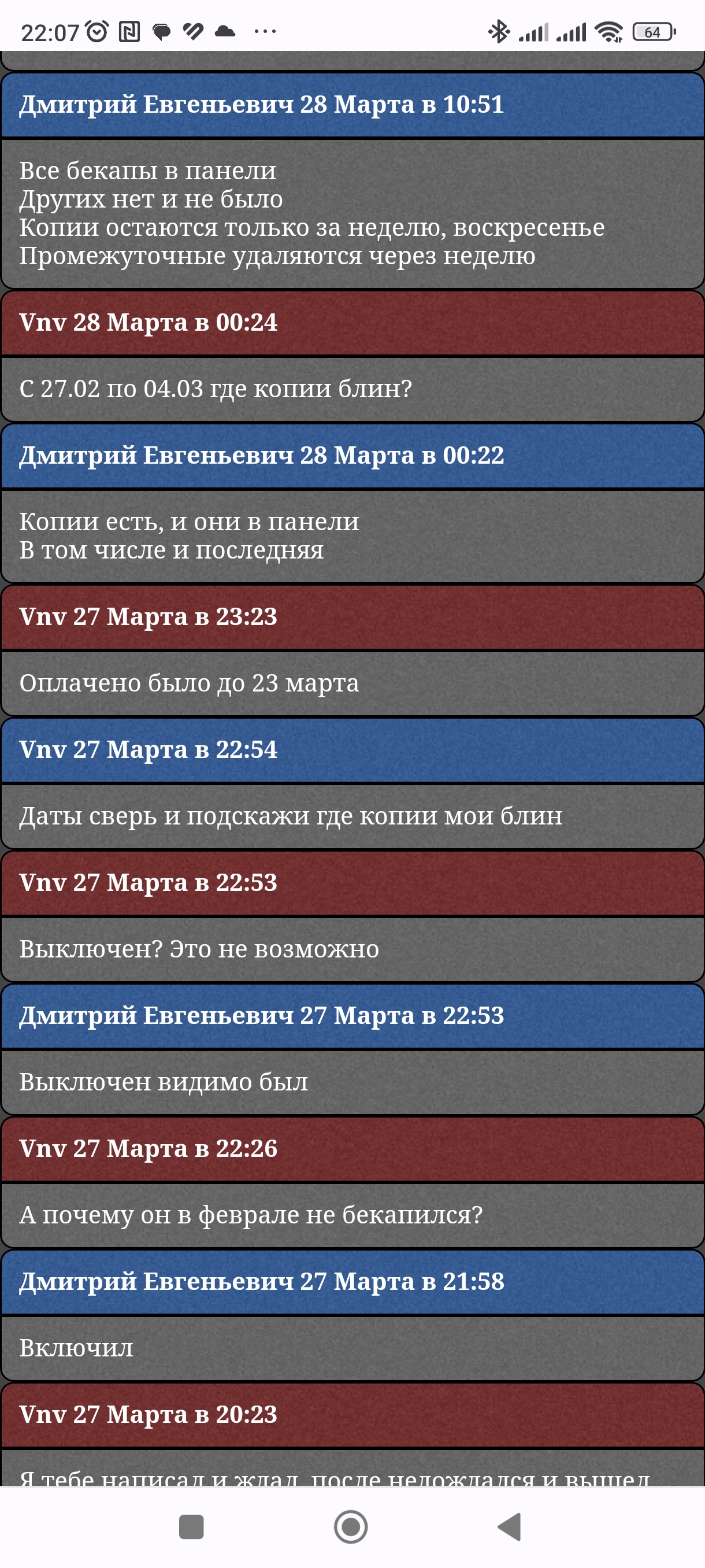 И спрашиваете за бекапы месячной давности, посуточно (!)