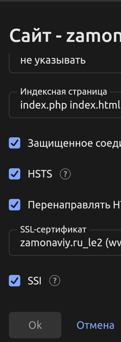 4) Доступен Let's Encrypt/Доступен выбор версий PHP