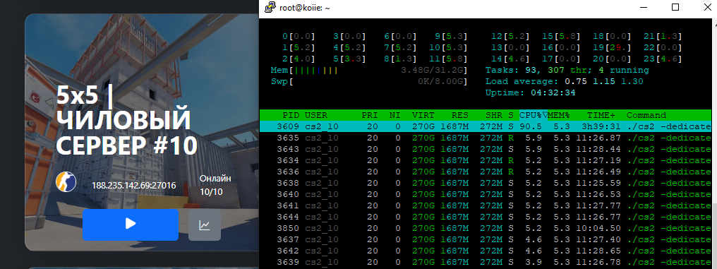 ц в той же убогой кс 2 максимум можно 10 слотовый сервак захостить :D (на скрине 3,2